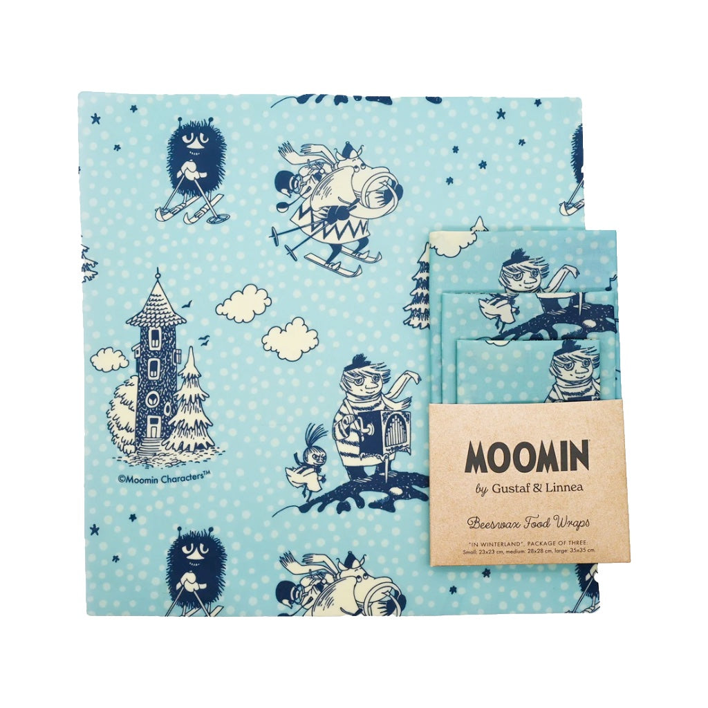 Bienenwachstücher 3er Set „Winterland” Mumin hellblau