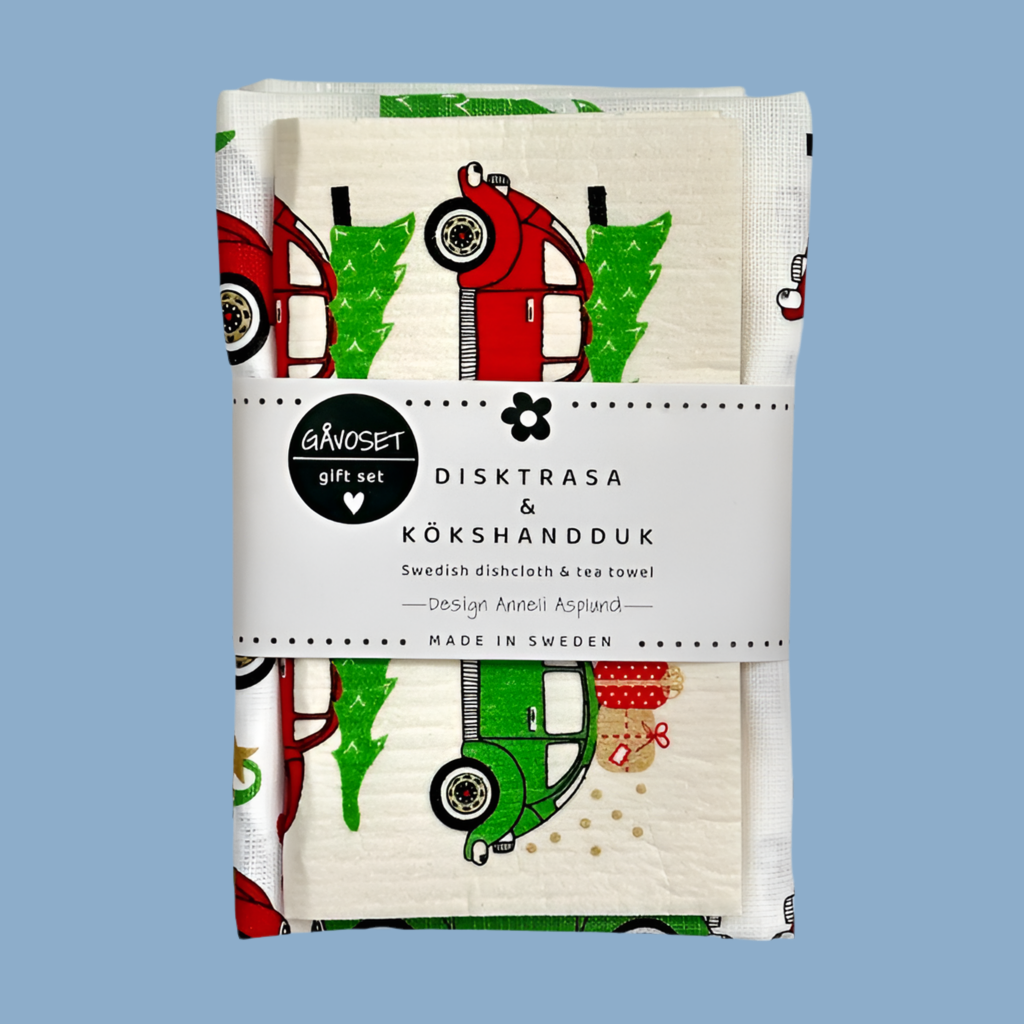 Geschenkset Geschirrtuch + Schwammtuch „Weihnachtsauto” von Anneko Design