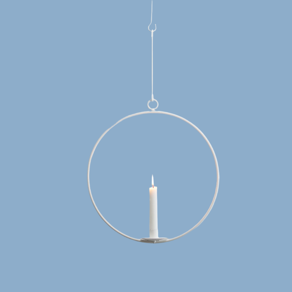 Schlichter Kerzenhalter für die romantische Beleuchtung von Fenstern und Nischen. An windstillen Tagen macht er sich auch sehr schön im Garten. Zur Aufhängung werden zwei Metallhaken mitgeliefert. Geeignet für handelsübliche Haushaltskerzen.