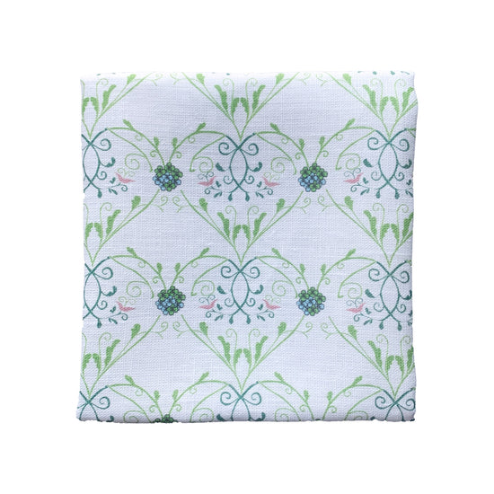 Das filigrane Muster des Leinen Handtuchs basiert auf floralen Motiven aus den Wandmalereien historischer Bauernhäuser in Hälsingland - einem kulturellen Schatz im Norden Schwedens.