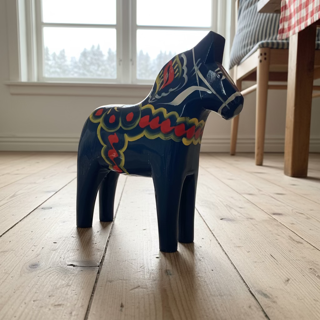 Hol dir ein Stück Schweden mit einem blauen Dalahäst nach Hause! Es kann allein stehen oder vervollständigt vielleicht deine Sammlung.