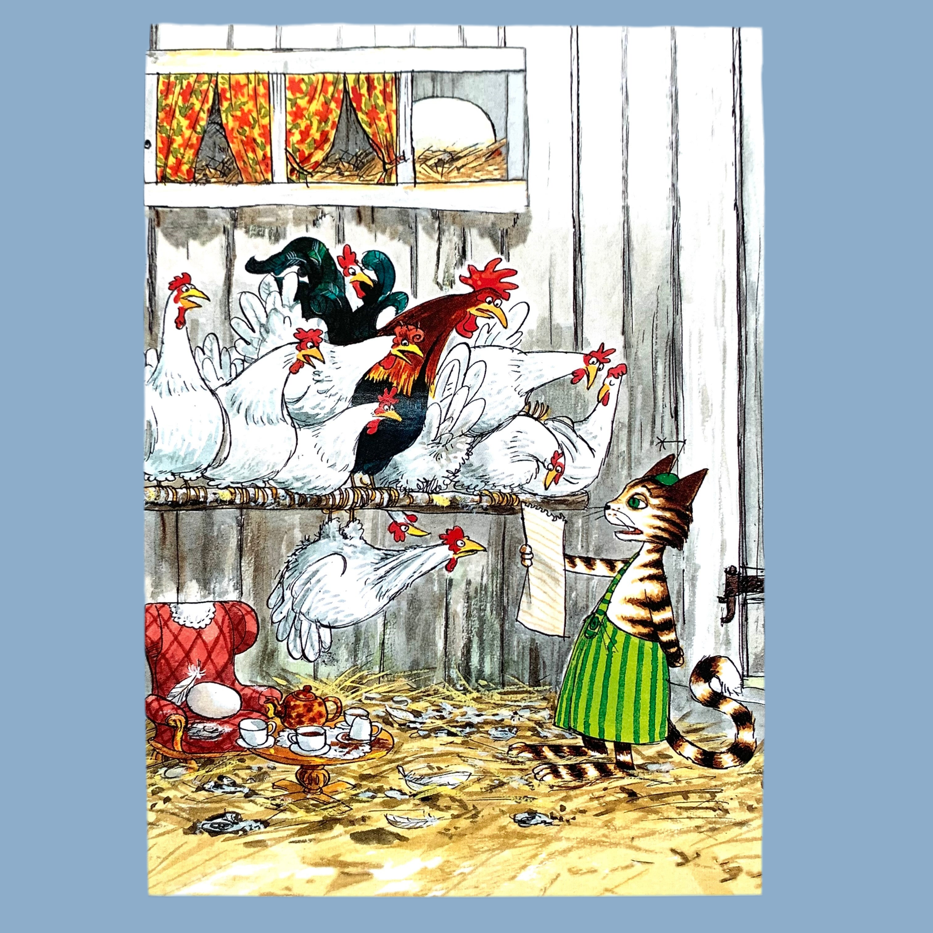 Postkarte Pettersson & Findus: Im Hühnerstall