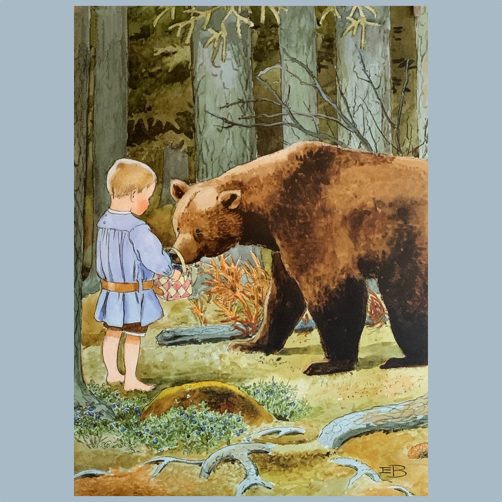 Kennst du das Kinderlied „Mors lilla Olle“ von Alice Tegnér? Es erzählt die Geschichte vom kleinen Olle („Mamas kleinem Olle“), der im Wald einen Bären trifft. Olle freut sich, dass er nun einen Kameraden hat und lässt den Bären von seinen Blaubeeren kosten.