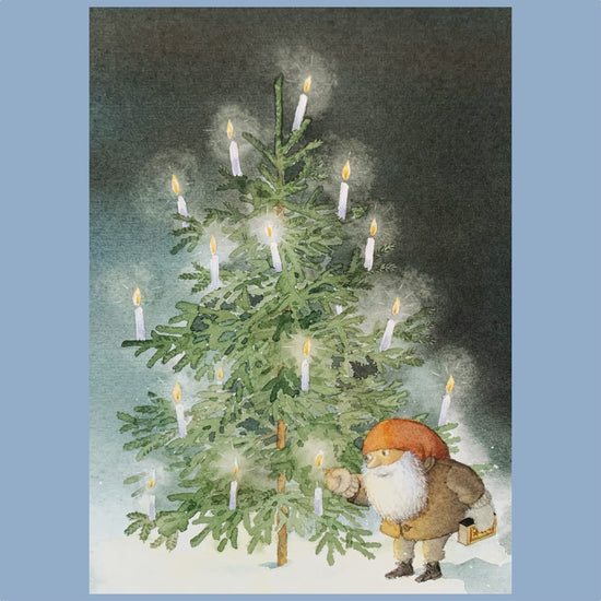 Postkarte "Wichtel zündet die Kerzen am Weihnachtsbaum an" Catarina Kruusval