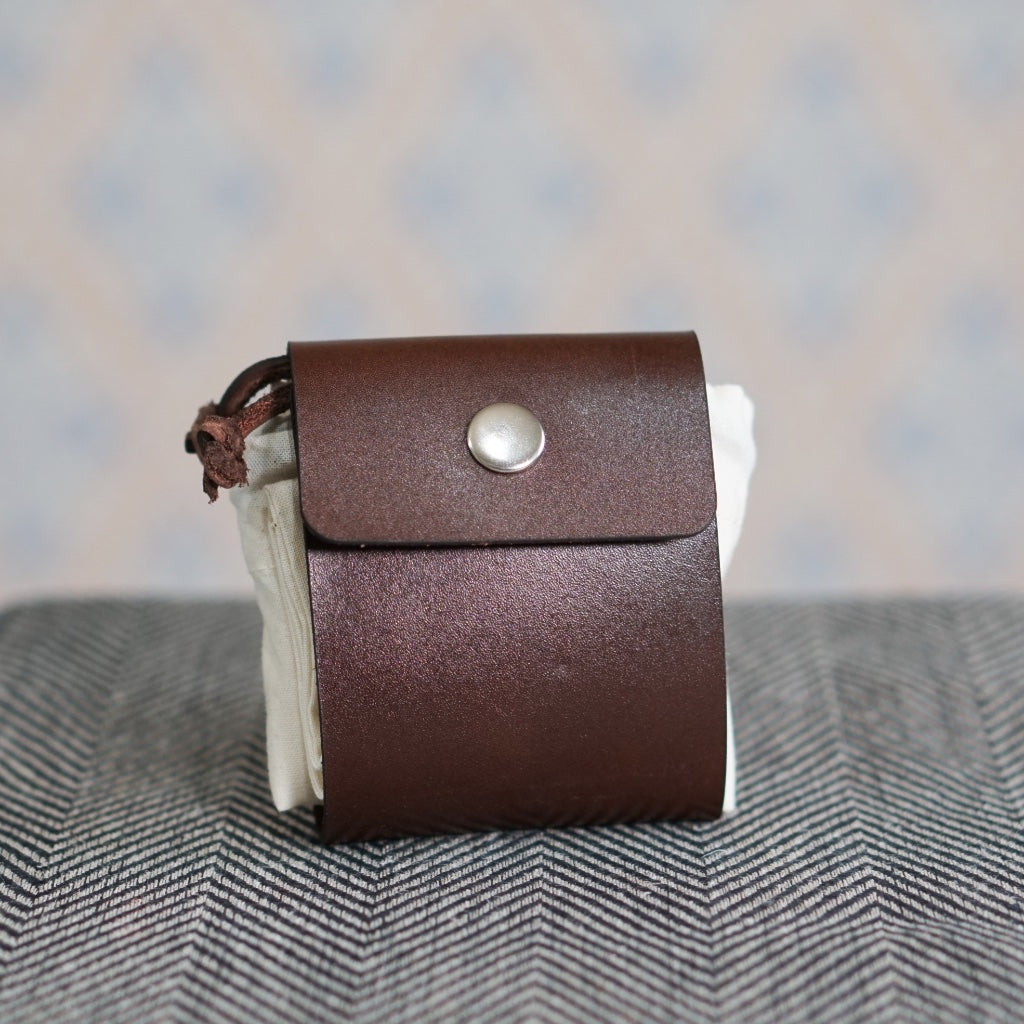 Sammelbeutel aus Baumwolle mit Lederhülle