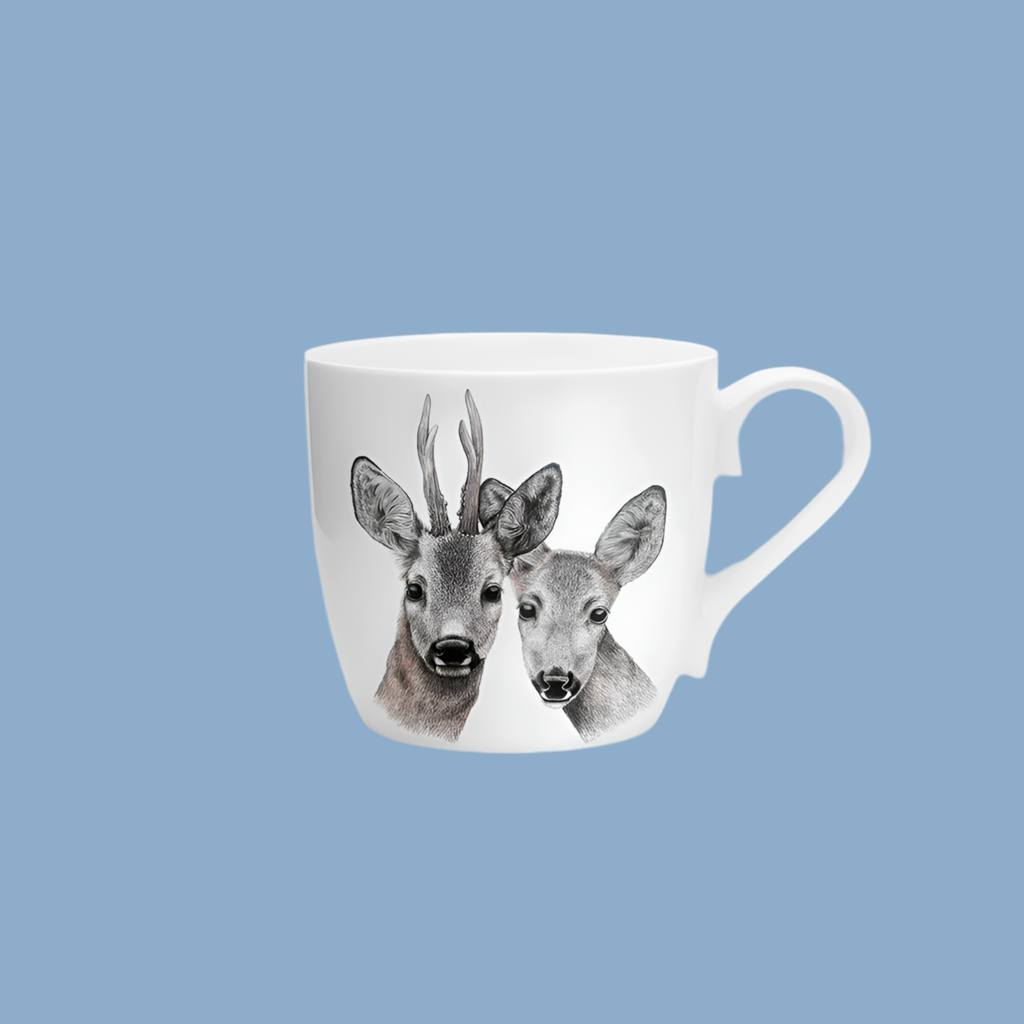 Die Rehe auf dieser Tasse haben sogar Namen - es sind Gustav & Veronica!
